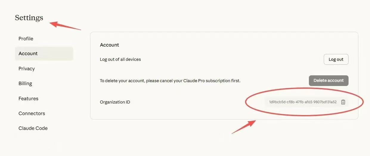 https://claude.ai)。 - 进入设置 → 账户信息 → 复制ID